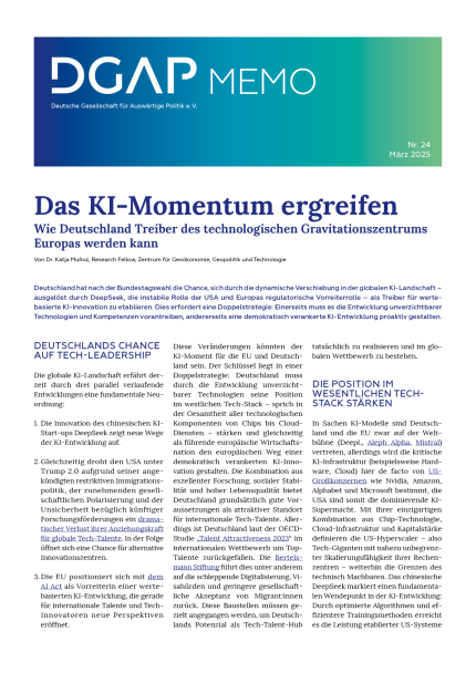 Diese Veränderungen könnten der KI-Moment für die EU und Deutschland sein. Der Schlüssel liegt in einer Doppelstrategie: Deutschland muss durch die Entwicklung unverzichtbarer Technologien seine Position im westlichen Tech-Stack – sprich in der Gesamtheit aller technologischen Komponenten von Chips bis Cloud-Diensten – stärken und gleichzeitig als führende europäische Wirtschaftsnation den europäischen Weg einer demokratisch verankerten KI-Innovation gestalten. Die Kombination aus exzellenter Forschung, sozialer Stabilität und hoher Lebensqualität bietet Deutschland grundsätzlich gute Voraussetzungen als attraktiver Standort für internationale Tech-Talente. Allerdings ist Deutschland laut der OECD-Studie „Talent Attractiveness 2023“ im internationalen Wettbewerb um Top-Talente zurückgefallen. Die Bertelsmann Stiftung führt dies unter anderem auf die schleppende Digitalisierung, Visahürden und geringere gesellschaftliche Akzeptanz von Migrant:innen zurück. Diese Baustellen müssen gezielt angegangen werden, um Deutschlands Potenzial als Tech-Talent-Hub tatsächlich zu realisieren und im globalen Wettbewerb zu bestehen.