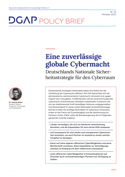 Mit dem Einmarsch Russlands in die Ukraine erhält Deutschland die einzigartige Gelegenheit einer Positionierung im globalen Cyberspace. Es reicht nicht mehr aus, bei Cyberoperationen auf die Einhaltung des Völkerrechts zu drängen und den Kapazitätsaufbau weiter voranzutreiben. Derartige allgemeingültige Erklärungen haben für die deutschen Verbündeten vor allem in Krisenzeiten keinerlei Wert. Die deutsche Regierung muss stattdessen eine konkrete Strategie für ihr weiteres Vorgehen entwickeln. Kurzum: Das Land muss sich als (Cyber)-Macht positionieren und von seinem Ruf als unzuverlässiger Partner befreien.