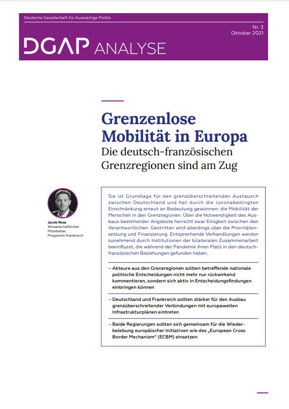 Die Verbesserung grenzüberschreitender Mobilität ist eines der Kernanliegen des Aachener Vertrags. Die Ausgestaltung dieses politischen Ziels auf der europäischen, nationalen und regionalen Ebene eröffnet viele Möglichkeiten zur sinnvollen Ergänzung und Zusammenarbeit, schafft aber auch eine Reihe von Konflikten. Letztere werden in den kommenden Jahren auch Herausforderungen für die neuen Institutionen und Instrumente sein, die der Aachener Vertrag geschaffen hat.