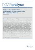 Zivilgesellschaftliche Organisationen besitzen großes Potential, innenpolitischen Wandel mitzugestalten. Nachdem im Zuge der EU-Erweiterung nach Mittel- und Osteuropa, die weitgehend unter Ausschluss der jeweiligen Bevölkerung geschah, diese Länder Reformen nur lückenhaft umsetzten, fordert die Europäische Kommission nun von Anwärtern mehr zivilgesellschaftliches Mitspracherecht.