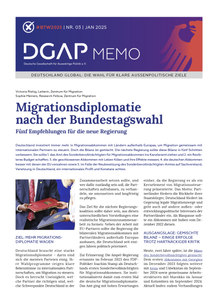 Das Ziel für die nächste Regierungskoalition sollte daher sein, aus diesen unterschiedlichen Vorstellungen eine realistische Migrationszusammenarbeit zu formen: Neben der Arbeit mit EU-Partnern sollte die Regierung die bilateralen Migrationsabkommen mit Partnerländern außerhalb Europas ausbauen, die Deutschland seit einigen Jahren politisch priorisiert.