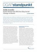 Six more years of Putin will, above all, mean six more years of economic and political stagnation. A lack of investment in education, research, health, and infrastructure stands in contrast to on-going high spending for the modernization of the military, deployments in Syria and the Ukraine, as well as financial losses from state-owned enterprises as a result of corruption to appease the power elite. Answers are lacking to address the aging of the population, while skilled laborers and the active parts of society are fleeing the country. Positive macroeconomic policies in recent years have brought down inflation and kept unemployment rate under 6 percent in 2017. At the same time however, salaries have been sinking for years, and the budget deficit, which stood at 1.7 percent in 2017, is again expected to reach 1.3 percent this year. All this means long-term stagnation, and Russia is likely to remain without any opportunities for real growth. A sudden spike in oil prices could bring some relief yet this is unlikely in the foreseeable future.