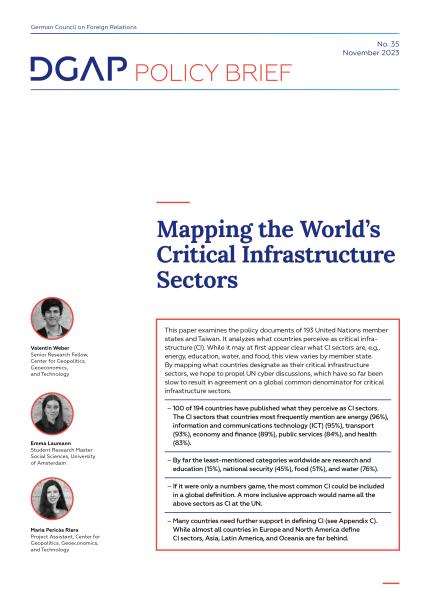 Many of these questions may be answered by further research. But alongside in-depth analyses by researchers, states themselves should also establish their own initiatives. Those that have published their lists of CI sectors should push for global standards regarding CI definitions and CI protection. As they have already set standards by publishing lists, they have a first mover advantage and could decisively shape global discussions on this issue.