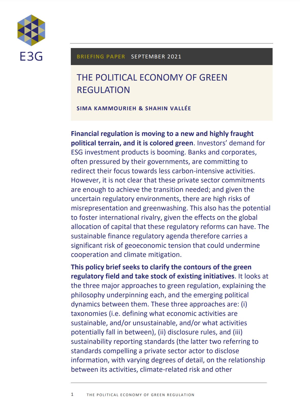Kammourieh, Sima, and Shahin Vallée. “The Political Economy of Green Financial Regulation.” September 2021.